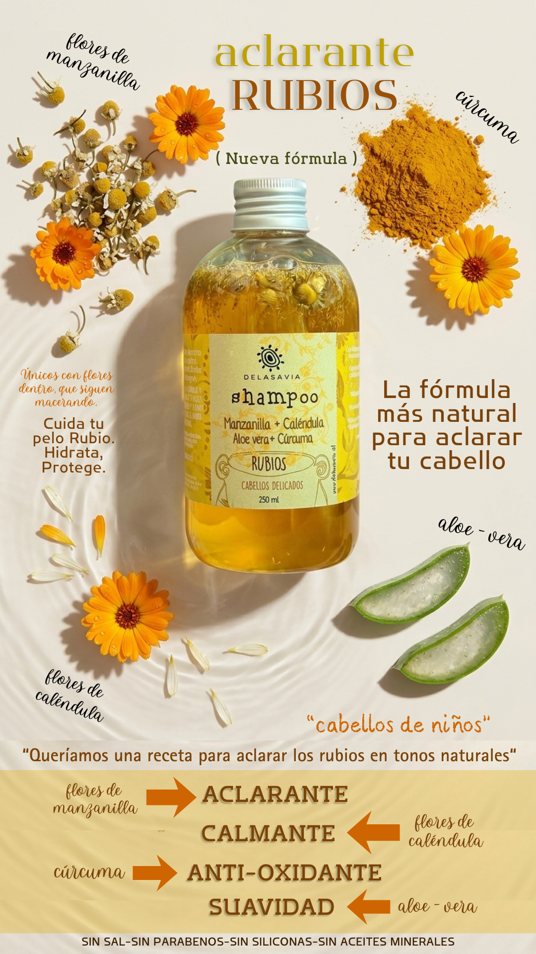 Nuestros productos son libres de parabenos, aceites minerales, sal y sin colorantes. Cada ingrediente es minuciosamente elegido para dar la mejor solución de cuidado.